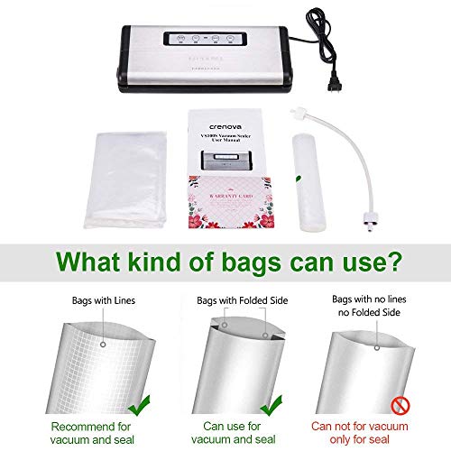 Crenova VS100S è una macchina per aspirare e creare sottovuoto nei sacchetti per conservare meglio il cibo, risparmiando soldi, tempo e spazio. Un apparecchio la cui utilità è ben dimostrabile quando non si ha molto spazio nel congelatore o nel frigo e si desidera far durare di più gli alimenti senza alterazioni nel gusto o nelle proprietà nutritive.