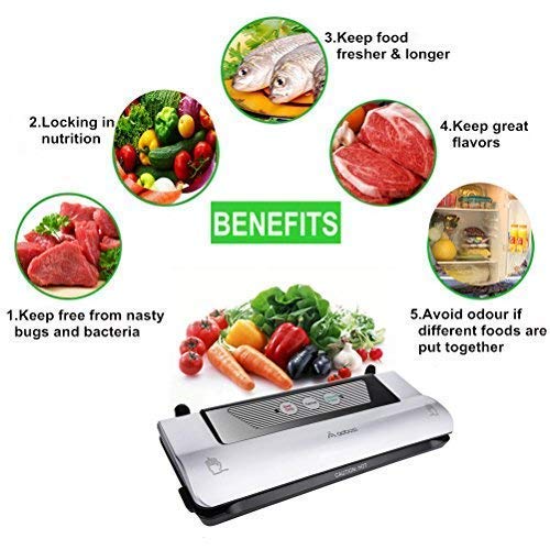 ed è a funzionamento automatico dal facile utilizzo per chiunque. La potenza del motore è di 110 Watt, idonea a garantire prestazioni professionali di confezionamento. Le opzioni disponibili in questo macchinario sono numerose: aspirazione, sigillatura e taglio. Quest’ultima funzione consente di rifilare e creare bustine per il sottovuoto a partire da rotolo compreso nella confezione d’acquisto. La capacità di saldare qualsiasi genere di busta, invece, consente di chiudere anche tutto ciò che non sia strettamente di tipo alimentare, come vestiti e oggetti di vario tipo. In dotazione sono inclusi dei sacchetti BPA free per sottovuoto e un rotolo. Il costo è del tutto accessibile e vantaggioso per chi voglia una macchina per sottovuoto professionale e semplice da utilizzare. Prodotto consigliato