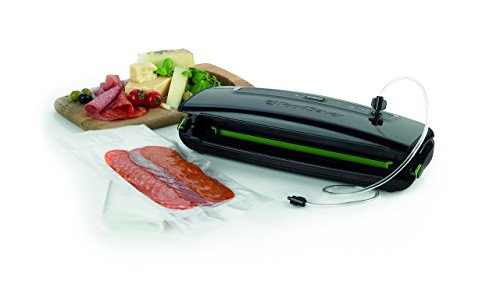 La macchina per sottovuoto FoodSaver 1X è uno strumento per il mantenimento dei cibo attraverso la tecnica dell’aspirazione e della sigillazione dell’alimento. Si tratta di un metodo di conservazione che preserva la freschezza e la qualità del cibo, riducendo gli sprechi e aiutando a risparmiare sulla spesa alimentare settimanale. Questo macchinario dal design moderno color nero, con ingombro ridotto, è dotato di un motore molto potente adatto ad un lavoro impeccabile di conservazione. Con la pressione di un solo tasto la macchina fa tutto: aspira e sigilla i sacchetti automaticamente. La presenza del tubo consente di collegare anche gli altri accessori FoodSaver adatti ad altre tipologie più specifiche di conservazione. Le dimensioni e il peso minimo della struttura lo rendono pratico e maneggevole, adatto a essere facilmente collocato.  Gli accessori in dotazione sono compatibili con questo macchinario e adatti al sottovuoto.