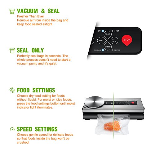 Geryon E5700 Macchina Sottovuoto Alimenti Professionale, Automatica Compatta Risparmiatori Di Cibo con Starter Kit di…