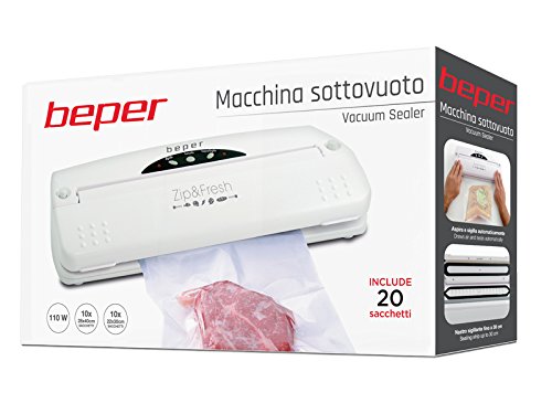 Abbiamo a che fare con una macchina sottovuoto davvero di ottima qualità, l’ideale per un uso domestico e non troppo intensivo: Beper fornisce un ottimo aiuto in cucina con questo elettrodomestico, l’ideale sia per cuocere sottovuoto che conservare gli alimenti nella maniera più fresca ed idonea, con due funzioni a scelta per sigillare. In omaggio vi sono anche 20 sacchetti per iniziare ad usare subito questo apparecchio per il sottovuoto, che ha un rapporto qualità-prezzo decisamente invidiabile, ammortizzando la spesa con una durata forse non eccezionale nel lungo periodo, ma più che sufficiente per fornire l’apporto necessario soddisfacendo le esigenze dell’acquirente. In linea generale abbiamo un modello di macchina per sottovuoto leggera e compatta, che non ingombra spazio in cucina, sigillando perfettamente, salumi, alimenti freschi, vaschette e tutto ciò che è necessario conservare e mantenere fresco in cucina. si tratta di un acquisto senz’altro consigliabile per la qualità delle prestazioni complessive offerte e il costo più che conveniente del prodotto, sia che venga acquistato in un negozio fisico che presso uno store on line in Rete, che propone sconti e promozioni sul macchinario stesso.